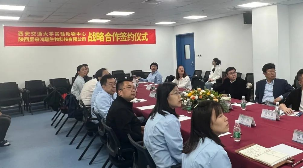 2024年4月11日,西安交通大學(xué)實驗動物中心與陜西里來鴻瑞生物科技有限公司在西安交通大學(xué)實驗動物中心會議室共同舉行了戰(zhàn)略合作簽約儀式。此次合作標志著雙方在生物醫(yī)藥領(lǐng)域?qū)⒄归_深入的科研合作與技術(shù)交流,共同推動實驗動物技術(shù)的發(fā)展及其在基礎(chǔ)研究與醫(yī)藥研發(fā)中的應(yīng)用。