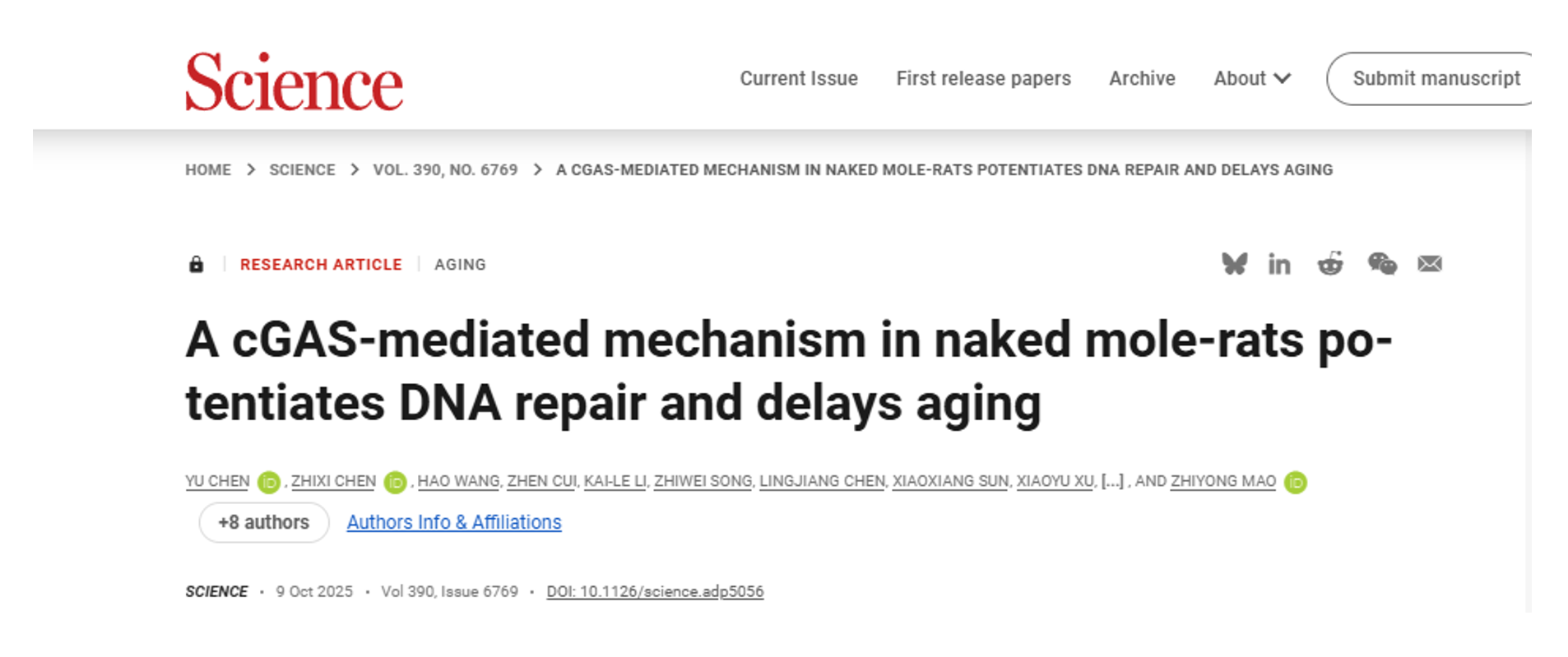 裸鼴鼠長壽機制獲突破:特定蛋白變異可增強DNA修復(fù),為延緩衰老提供新靶向